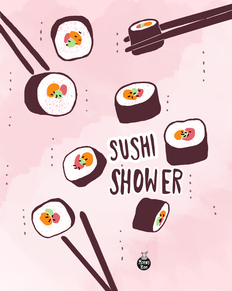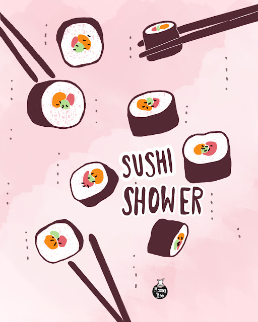 Also, how cool would a sushi (veg., of course) shower be! VERY, I know.