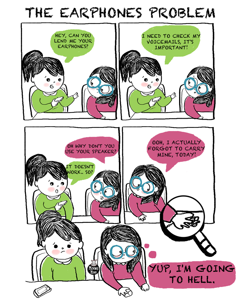 I just can't share my earphones (because I don't trust your ear hygiene levels), and I also don't want to be rude, so I LIE. SUE ME.