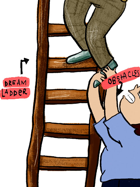 Anyway, I have another sneak peek! Although, the illustration is not used in the same context in the book as I've shown below, but here it means that the ladder to your dreams will have obstacles and constraints but you've just gotta keep persevering! Never let the obstacles be the reason for you to stop climbing up the ladder, or to fall off and never get back up. So, there! A few words of motivation from me to me and you, if you need them for some reason! Happy climbing, lovely souls! :)
